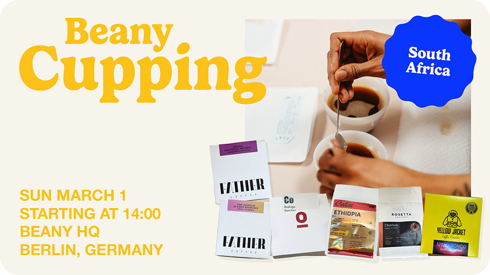 Beany and their crew traveled to South Africa, where we visited outstanding coffee places, met great roasters, and brought back stunning coffees. Join us on Sunday, March 1, at 14:00 for a unique cupping of coffees from some of the most interesting roasteries we found in South Africa.